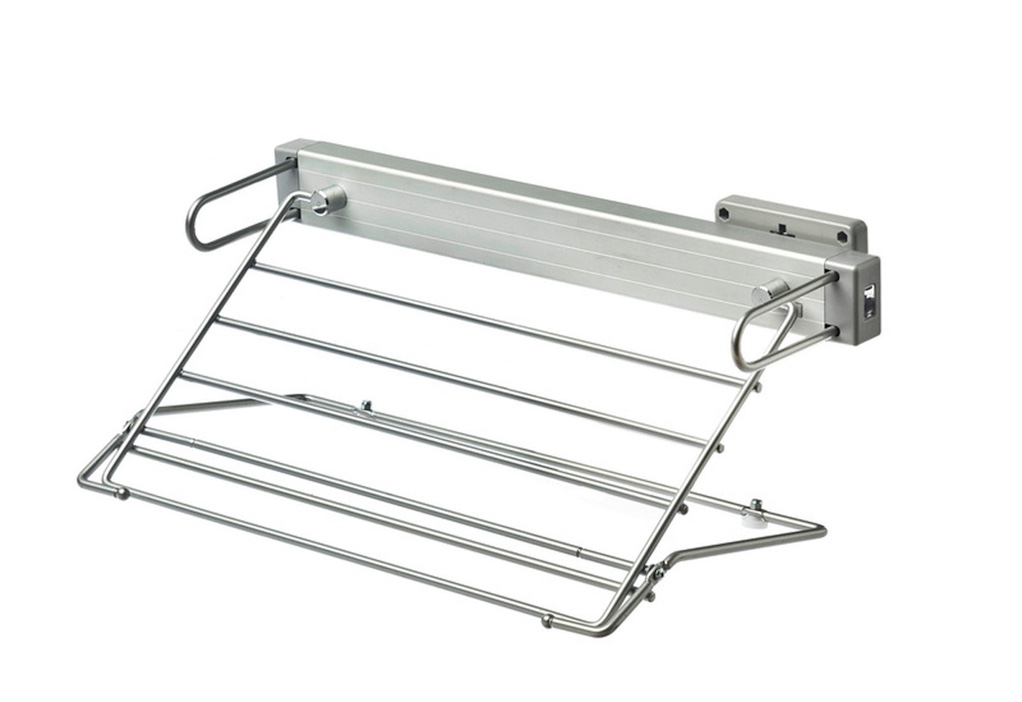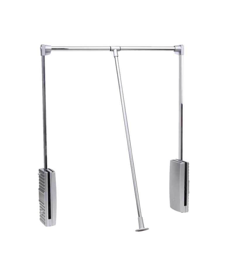 Kleiderlift: Kleiderstange und Schwenkarm aus Stahl, verchromt. Gehäuse aus Kunststoff, silberfarbig lackiert, trendiges Design, Tragkraft 15 kg, optimale Schrankausnutzung, Ölhydraulik – Dämpfer, sorgt für das unterstützte bzw. gebremste Zurückschwenken