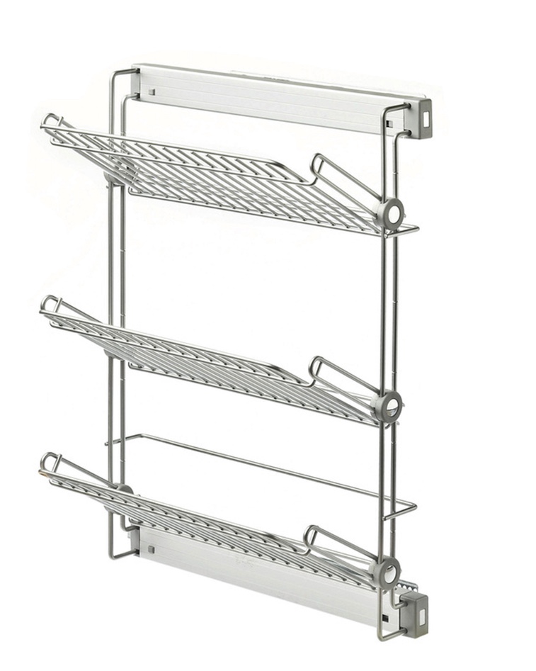Schuhregal: mit 3 Ablagekörben, mit Vollauszugsführungen mit Soft-close, Auszugslänge 470 mm, zum Anschrauben an die Korpusseitenwand, 291 x 521 x 772 mm