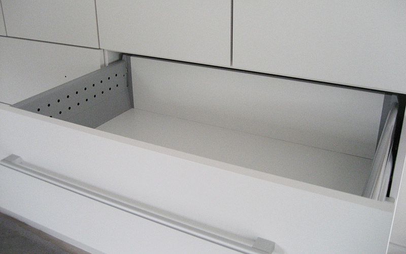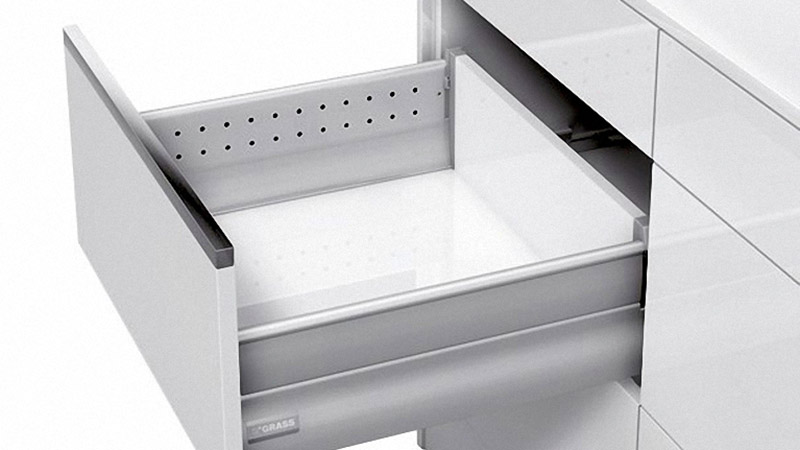 Stahl-Zargensystem mit Vollauszug, Tragkraft 40 kg, Auszug: Soft Close, Zargenfarbe metallic